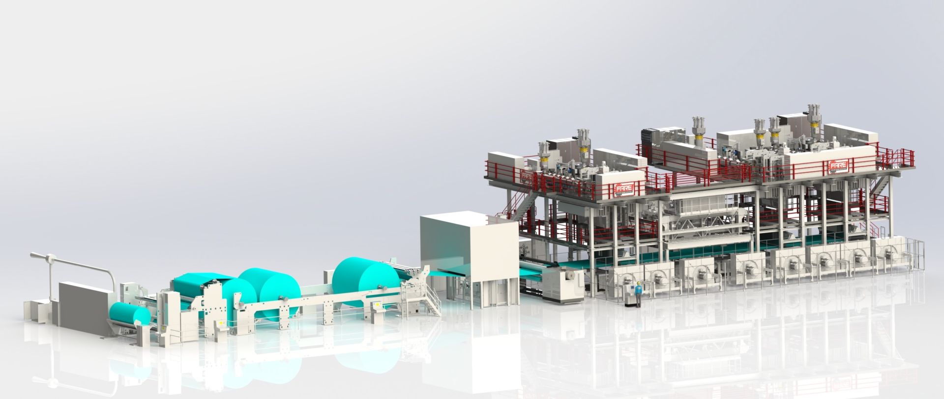 - Compositi: da 3 teste (SMS) a 6 teste (SSMMMS) in combinazione con Meltblown e/o altri processi