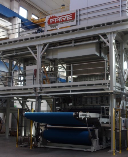 La nuova linea spunbond utilizza poliolefine come materie prime per la realizzazione di un'ampia varietà di prodotti, specialmente per il settore igienico, questo grazie alle soluzioni tecnologiche bico brevettate e implementate da Farè sulle linee installate di nuova generazione.